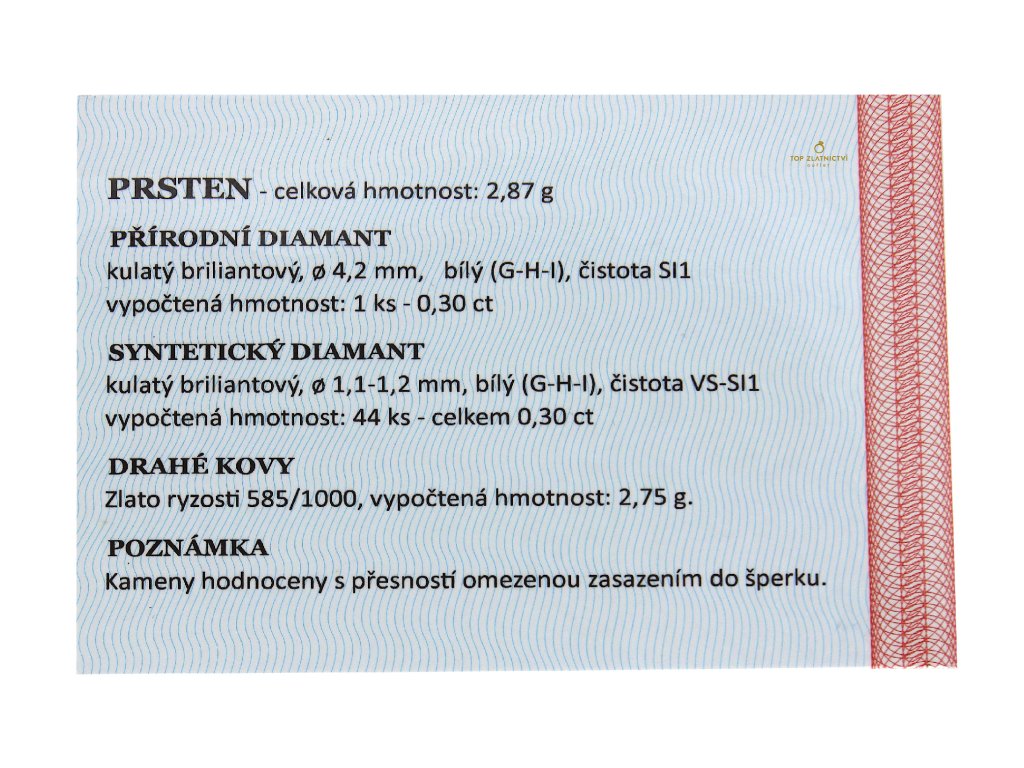 Šperk je opatřen puncovní značkou. Záruka původu, pravosti zlata a kamenů.