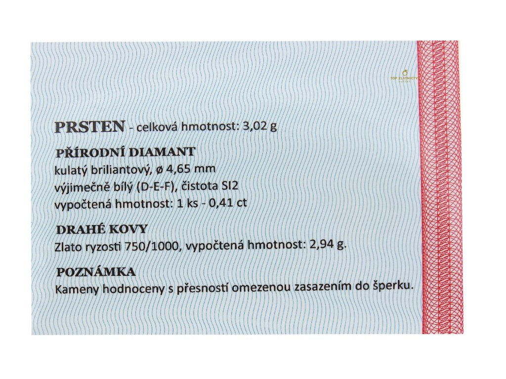 | Ryzost zlata: | 750/1000 (18 karátové) |
